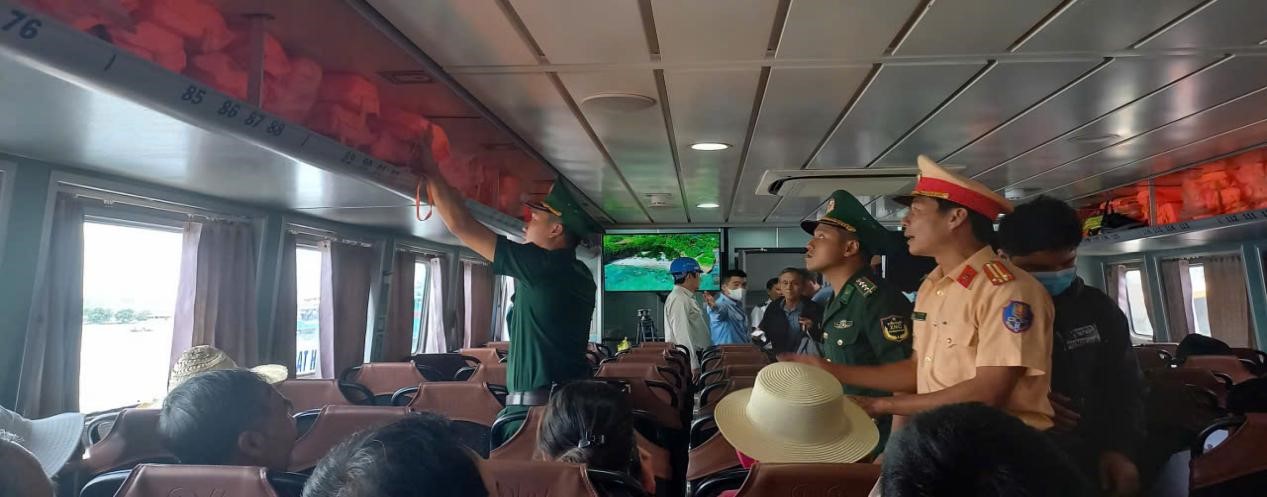 Ảnh: các lực lượng kiểm tra phương tiện trước khi rời cảng