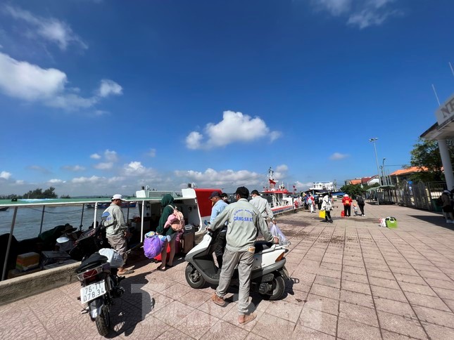 Hành khách qua cảng Bến Đình tại Lý Sơn để vào lại đất liền